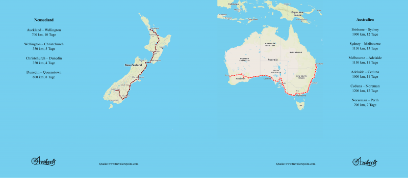 Nach 9.000 km durch Afrika und Südostasien durchstreifen die Abenteurer Lion und Addy sie im Sehnsuchtsziel Neuseeland traumhaft schöne Naturkulissen. Sie lernen Land und Leute vom Sattel aus kennen. Dazu jedoch kommt eine andere, unerwartete Seite, die uns aus der Ferne durch die Touristenbrille weitestgehend verborgen bleibt.Anschließend stellen sich die beiden Freunde im riesigen Australien ihrer bisher größten Herausforderung: Einmal von Ost nach West – einmal durch die lebensfeindlichen Weiten der Nullabor Wüste. Wird es Ihnen gelingen, ihren Traum durchzuziehen angesichts von Staub, Hitze und endloser Weite?